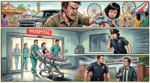 At the school carnival with my daughter. She tugged my jacket. “Dad, can we just go home? Please?” we got to the truck. She lifted her sweater. What I saw made me stop breathing. Bruises. Dark purple bruises across her ribs. “Mr. Harrison did this,” she whispered. The principal. I didn’t scream. I didn’t cry. I buckled her seatbelt. Drove straight to the hospital. I made calls. Exact four hours later, true story my wife came home because…